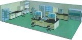 【描述】 为了化学实验的正常工作,在实验工作区域允许情况下, 一般摆放中央台和靠边实验台,在墙体一侧摆放供实验用排毒柜。化学实验室一般考虑上下水较多的情况,在中央台或边台上方配制试剂架,便于药品及样品存放。